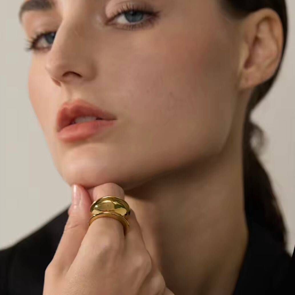 「Echo Ring」は、クラシックなフォルムに大胆な厚みを持たせた、彫刻のような存在感を放つリングです。