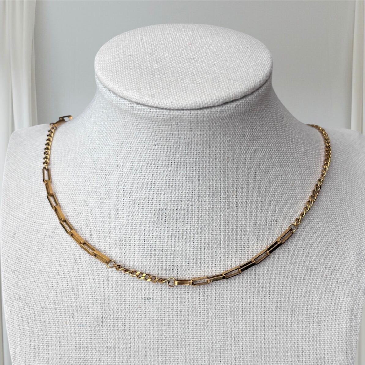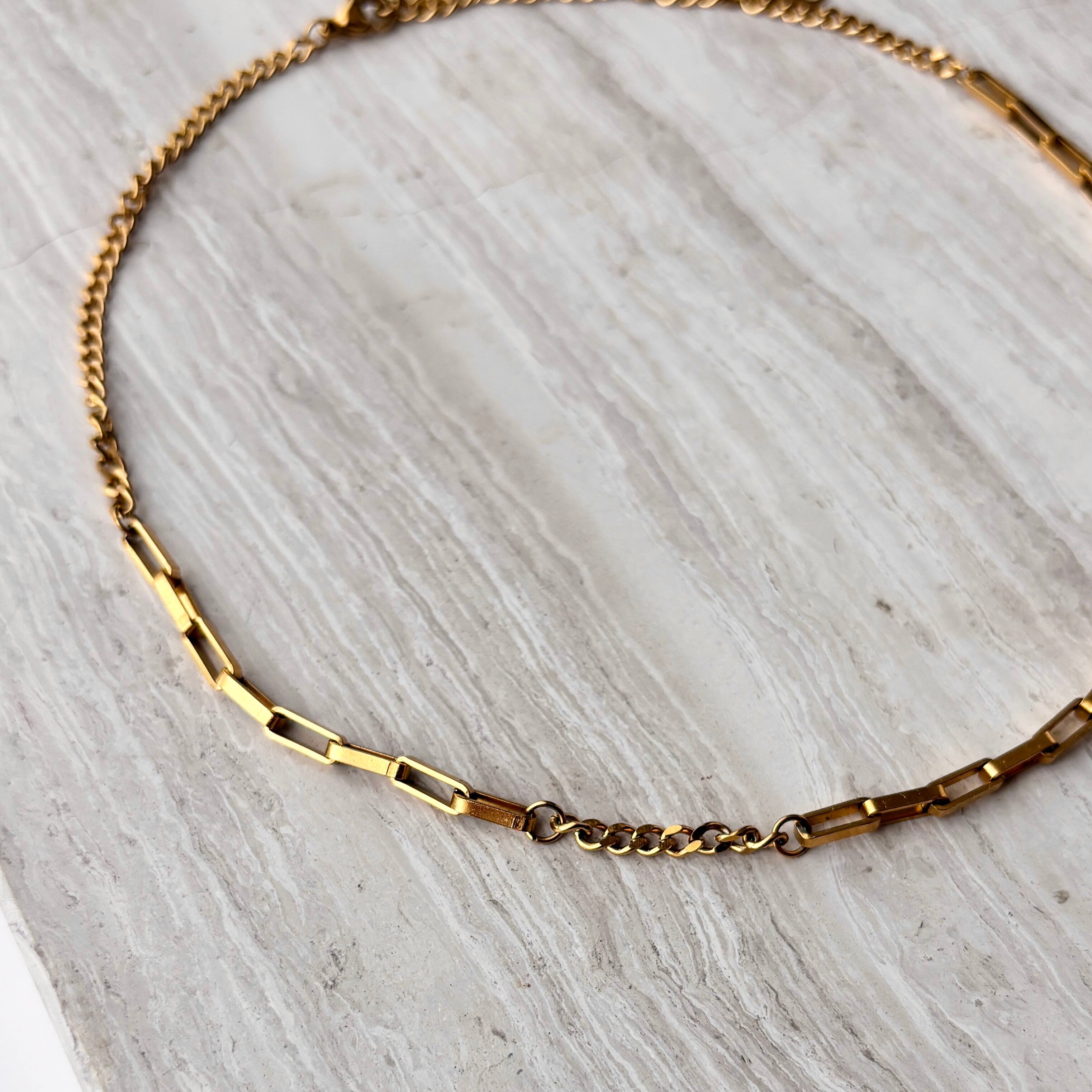 「Dual Chain Whisper」は、異なる表情をもつ2種類のチェーン——しなやかなカーブを描くフィガロチェーンと、シャープで洗練されたリンクチェーン——を組み合わせた、ミニマルながらも緻密に計算されたデザイン。
