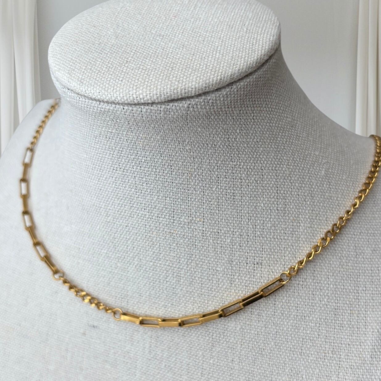 装いに静かに寄り添う、絶妙なバランスを持ったネックレスです。